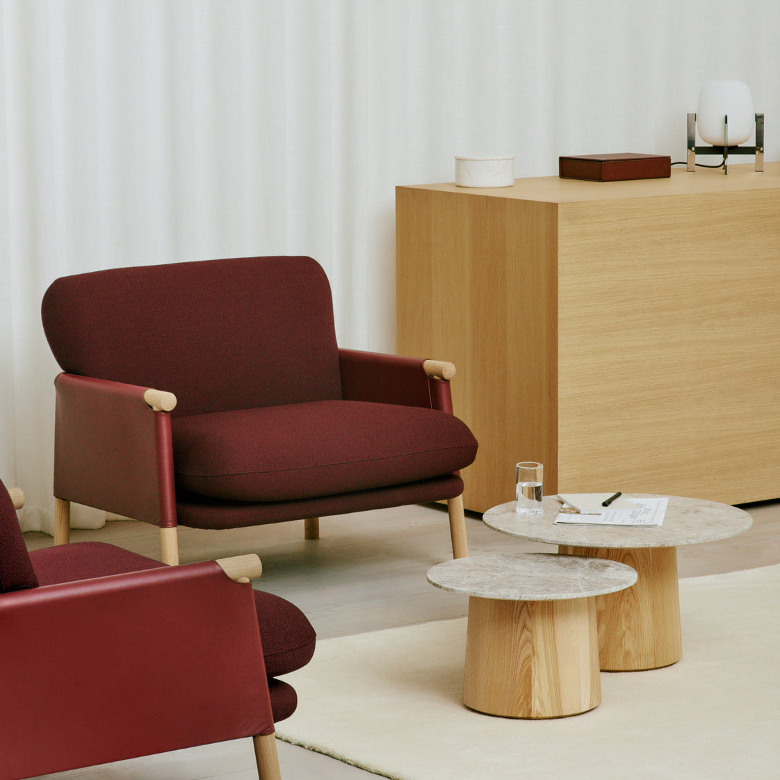 The concept allows you to choose different colors for the leather, fabric and wood or match the colors for a more understated look. This fascination with materials is a focal point for Swedish designer Monica Förster. The Savannah series exemplifies her passion for exploring different shapes, tones and textures. Working with traditional craft techniques to reinvent and renew typologies within furniture and object design.