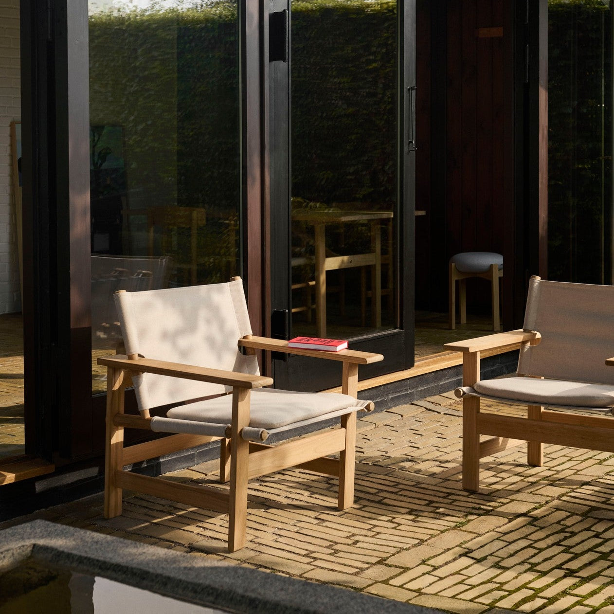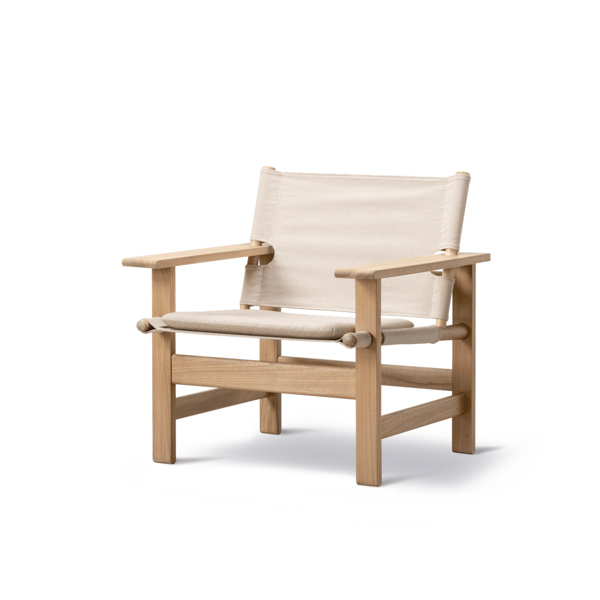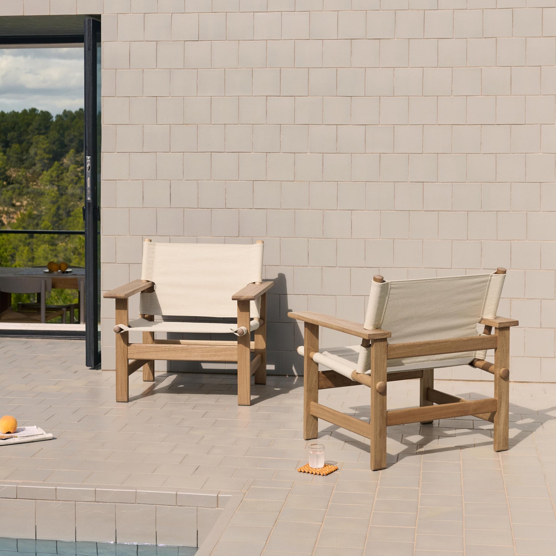 The Canvas Outdoor Chair combines Børge Mogensen's iconic design with modern versatility. This adaptation of Mogensen's classic design blends outdoor durability with indoor comfort. With its familiar form, solid teak frame, and textured canvas, the chair brings a sense of relaxed elegance to both outdoor and indoor settings.