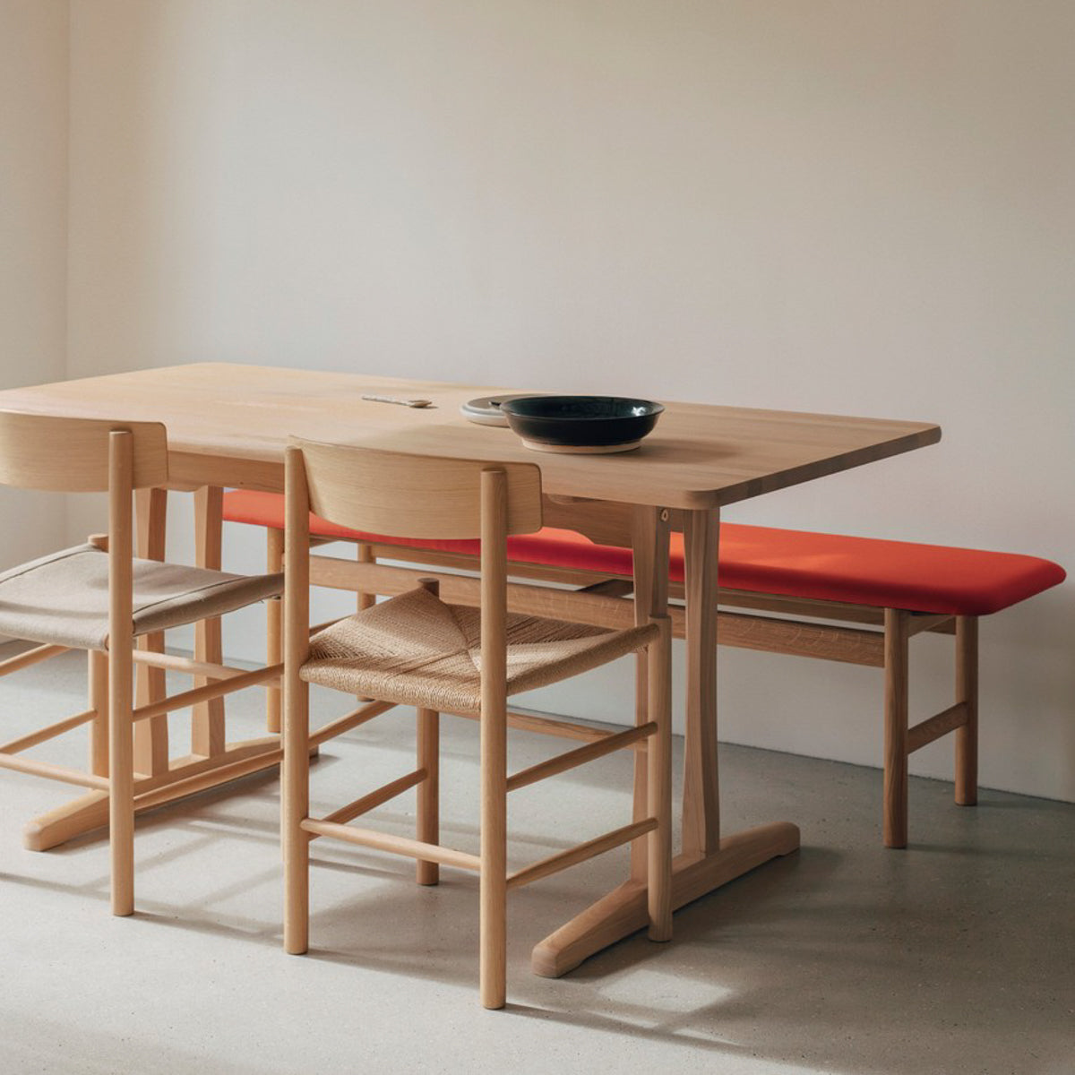 The Mogensen 3172 Bench represents a revised iteration of the original 3171 Mogensen Bench that clearly reflects Børge Mogensen’s admiration for the functionalist traditions of American Shaker furniture.