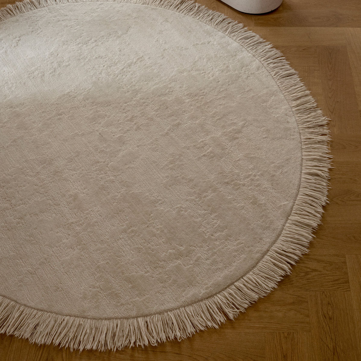 Featuring a rough-cut surface Oceanic Reef has been cut by hand to create varying pile heights that reveal a random structural pattern. The surrounding fringing has also been hand cut, bluntly clipped to different lengths to soften the rug’s silhouette. Crafted in soft, durable wool, Oceanic Reef has a natural, understated elegance that will elevate any floor space.