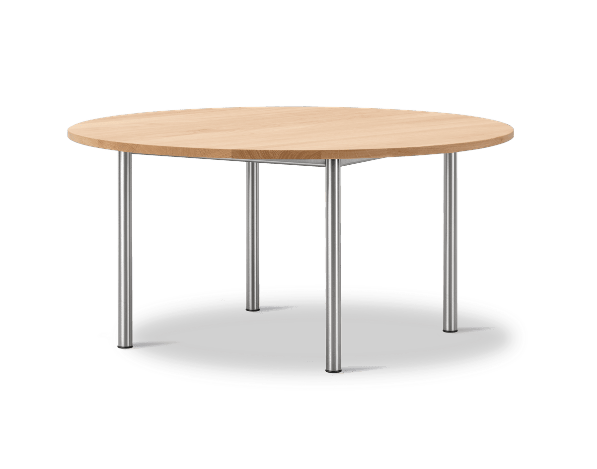 The Plan Table with fixed dimensions is a simple 4-legged table fit for smaller spaces or needs, to be used as a dining table, for the home office or as an intimate meeting table. Both Plan Table Fixed and Plan Table Extendable are available in solid wood tabletops in oak for a natural and tactile feel highlighting the Fredericia woodworking competencies.